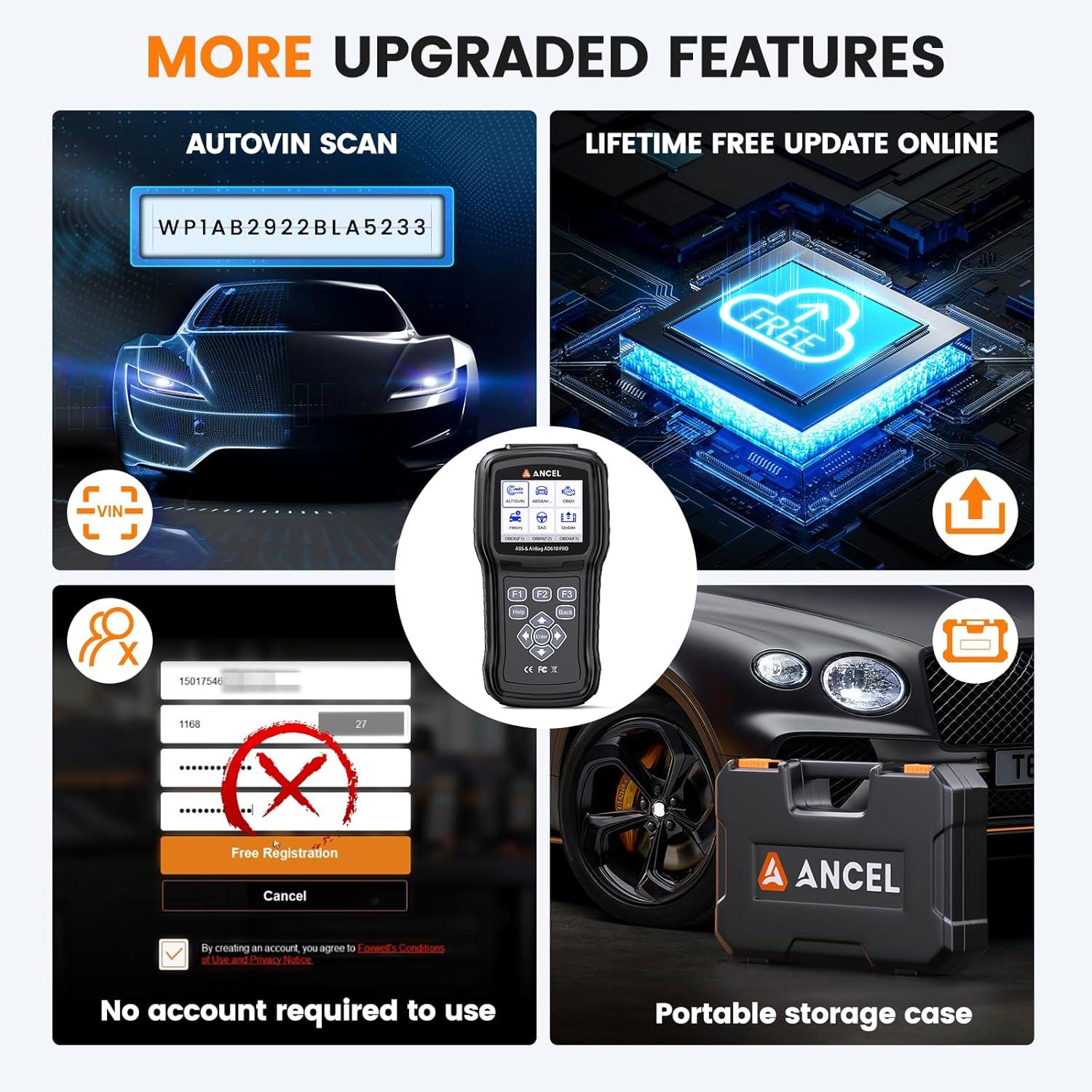 Multi-System Reset & Calibration – In addition to basic diagnostics for ABS, SRS, and engine systems, it also offers advanced functions like SAS calibration, along with resets for ABS, airbag, oil light, and EPB, ensuring optimal vehicle performance. Note: Reset functions may vary depending on the vehicle make, model, and year. Please send your VIN for confirmation before purchasing