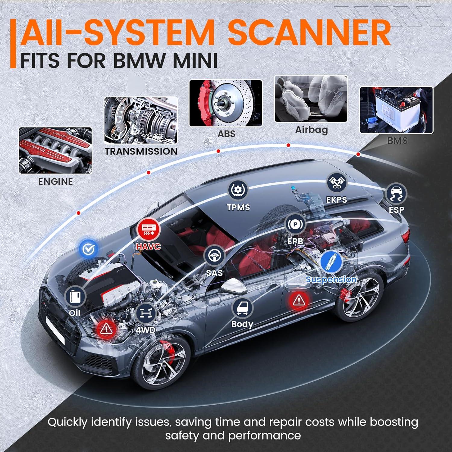 All-System Diagnostics – This tool is a comprehensive all-system OBD2 scanner exclusively designed for BMW, MINI, and Rolls-Royce. It diagnoses all controlled modules, including ABS, SRS, Engine, Transmission, EWS, CAS, ECM, ASC, EGS, EKPS, GWS, and more. Enabling you to unlock hidden potentials, detect issues early, and make informed decisions for optimal performance. System functions vary for each car model due to different modules.