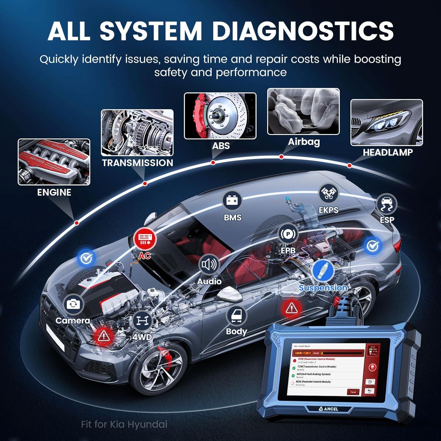Full Systems Diagnostic: ANCEL DS160 offers comprehensive and in-depth diagnostics for all available modules. This includes the main system of engine, ABS (Brake), SRS (Airbag), transmission, ESP, SAS, audio control, air conditioning control, PCM, and more.This enables you to detect issues early on and make informed decisions for achieving optimal performance.