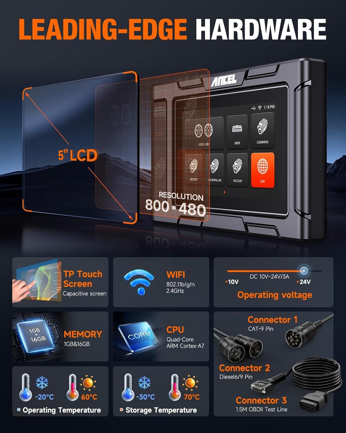 Stay Ahead with Lifelong Updates: Support free updates indefinitely, ensuring your software remains up-to-date, unlike other truck scanners that may charge annual fees or lack update support. Stay current effortlessly. Notice: Ensure your scanner is updated to the latest software version before use. You can download updates from ANCEL official website to ensure compatibility with the newest truck models