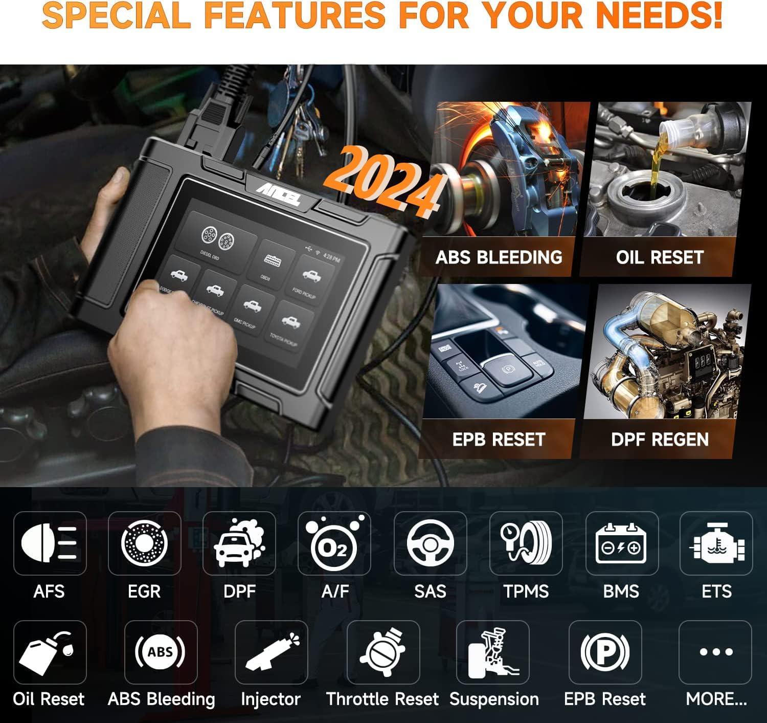 🚚【Perfect Service Reset & Bidirectional Test】HD3500 pickup truck diagnostic scanner can provide special functions and active test, such as Oil Reset, Brake Reset, ABS Bleeding, Injector reset, SAS Reset, TPMS Reset, BMS Reset, ETS Reset, AFS Reset, EGR Reset and more depending on make & model! Note: Please send VIN number(s) of the vehicle(s) to us, if you are not sure whether this scanner is compatible with your vehicle or not.