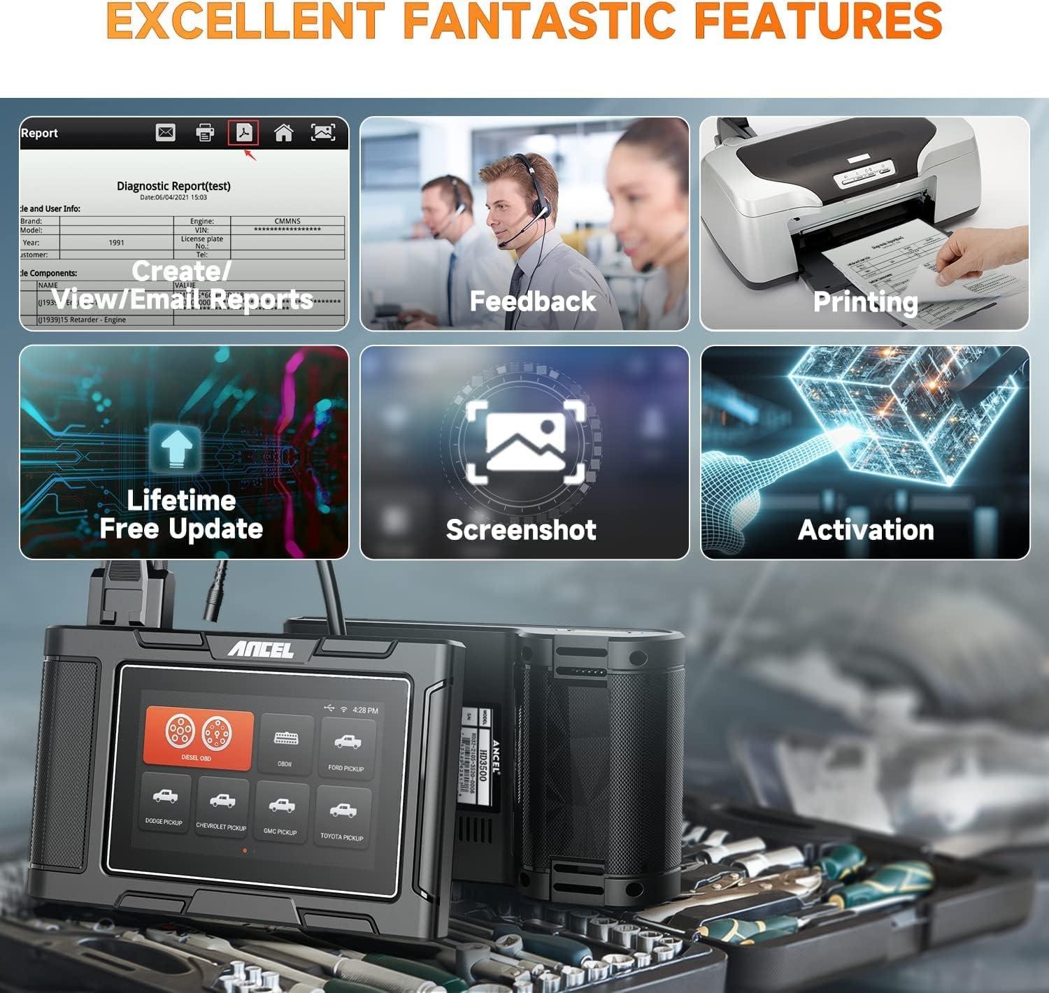 🚚【Lifetime Free Update】+【Pin Detect Function】Pin Detect function is used to diagnose the connection status of the OBD inter face and detect whether the pins are damaged. This diesel code reader also allow you get the latest version at any time with free update via WIFI .Moreover,Compared to the normal OBD diagnostics which need to cost hundreds of dollars to update the newest version, Our Product-Ancel HD3500 can save you a lot of money on annual expenses.