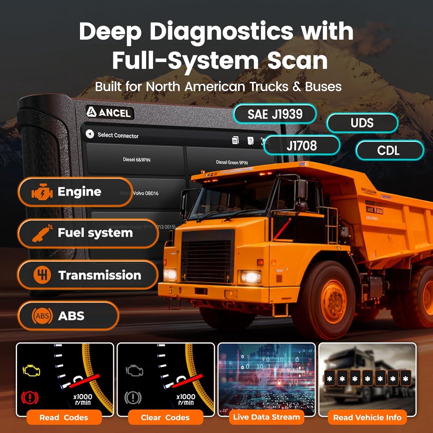 ANCEL HD120 Heavy Duty Truck Scanner with DPF Regen for Volvo & International Engine, Full-System HD-OBD Diesel Truck Diagnostic Tool, Lifetime Free Updates
