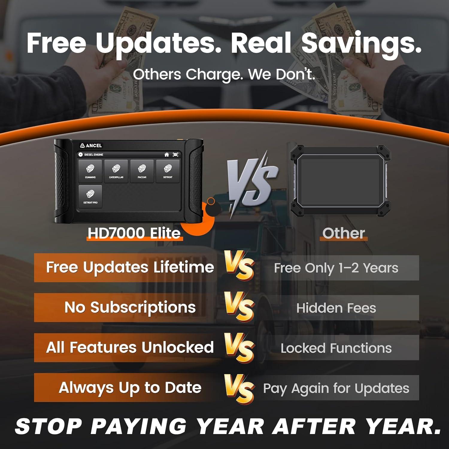 Buy Once, Lifetime Free Updates : Pay once and keep your ancel dpf regeneration scanner working for years to come. With lifetime Wi-Fi updates, your device automatically adds new truck models and system coverage without ever paying extra. No subscriptions, no hidden fees, no surprises. This is a one-time investment that keeps your fleet diagnostic ready today, tomorrow, and for every mile ahead. It also includes 30-day returns, a 1-year of warranty, and lifetime technical assistance whenever you need it