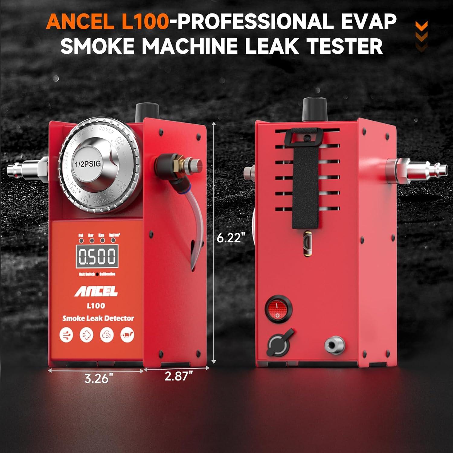 ANCEL L100PRO Smoke Machine Automotive, Built-in Air Compressor, Adjustable Digital Pressure Gauge & Flow Dial, Safe Car Smoke Leak Tester for EVAP, Vacuum, Fuel, Exhaust, Intake Pipes Leak Detection(orange)