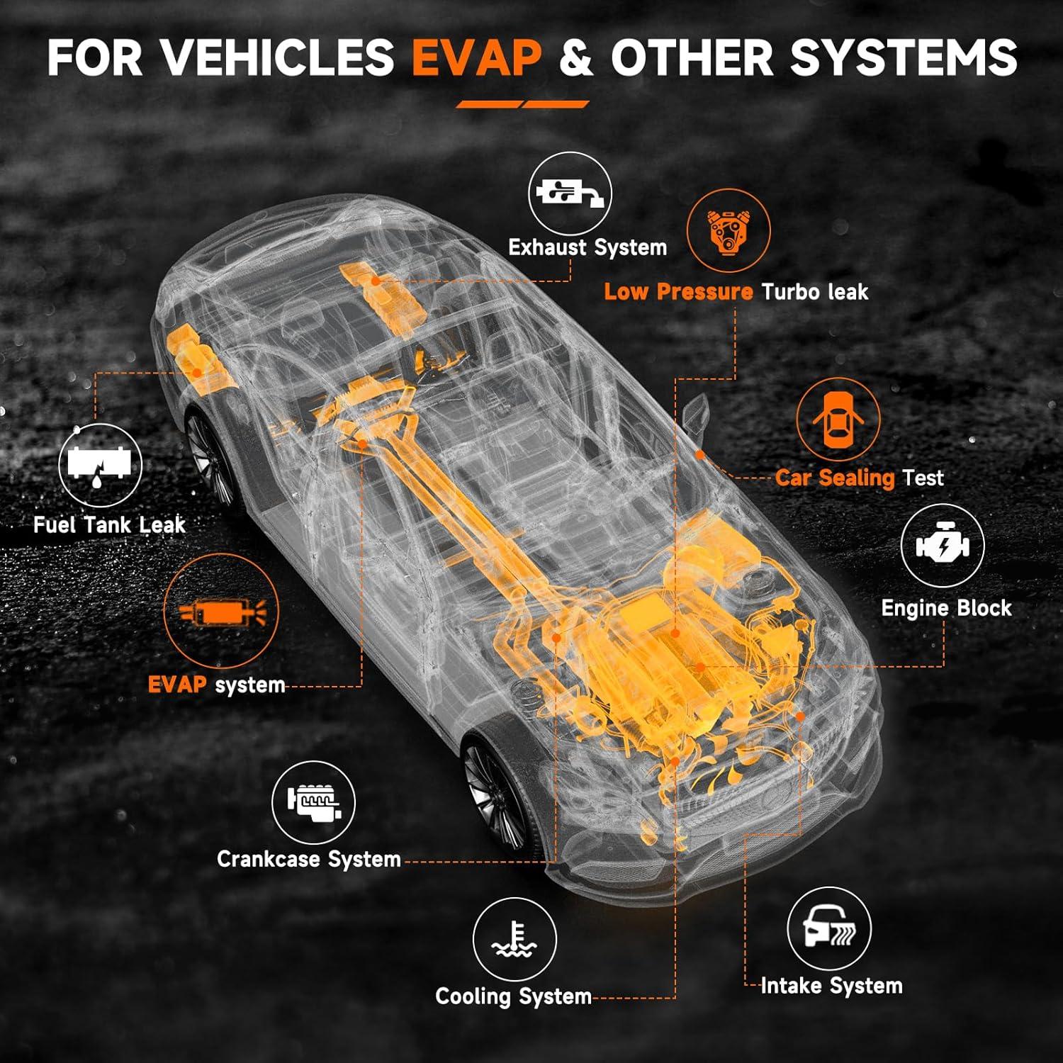 🌀【Convenient Built-in Air Pump】No need for an external air compressor! The ANCEL L100Pro features a built-in air pump, providing a portable and hassle-free solution for smoke leak detection. Diagnose vacuum leaks, fuel system issues, or EVAP system problems on the spot with this self-contained design. Save space, simplify the process, and perform diagnostics anytime, anywhere