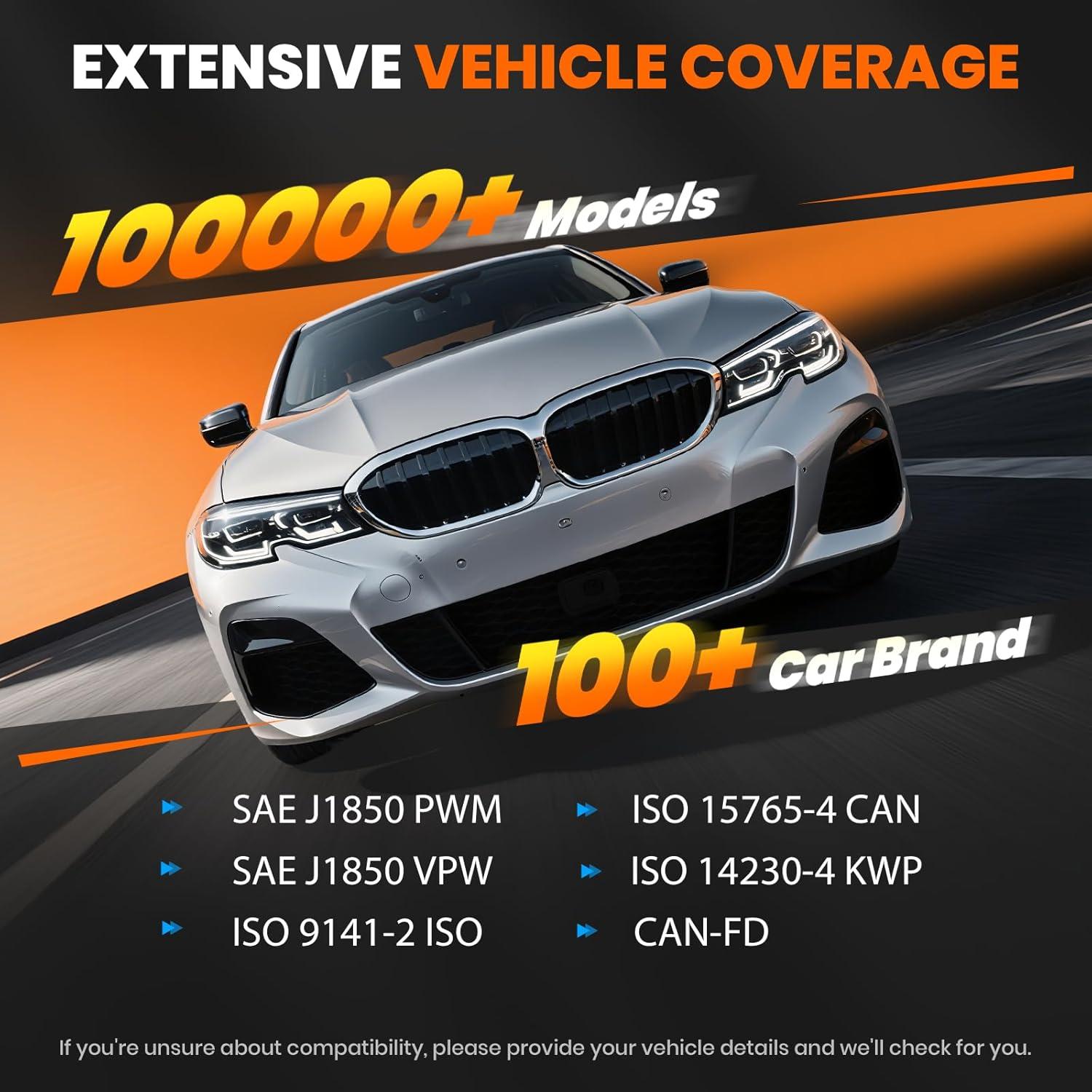 Widely Compatible – As the bridge the gap perfectly between basic code readers and professional-grade equipmentits, FX6100 scanner para autos its an ideal tool for machanics and repairs. It supports SAE J1850 PWM, SAE J1850 VPW, ISO 9141-2 ISO, ISO 14230-4 KWP, ISO 15765-4 CAN and the latest CAN-FD protocol for faster, more efficient communication with modern ECUs. Covering 100+ car brands and over 100,000 vehicle models worldwide, with 20+ language options, it's built to serve professionals and enthusiasts around the globe.