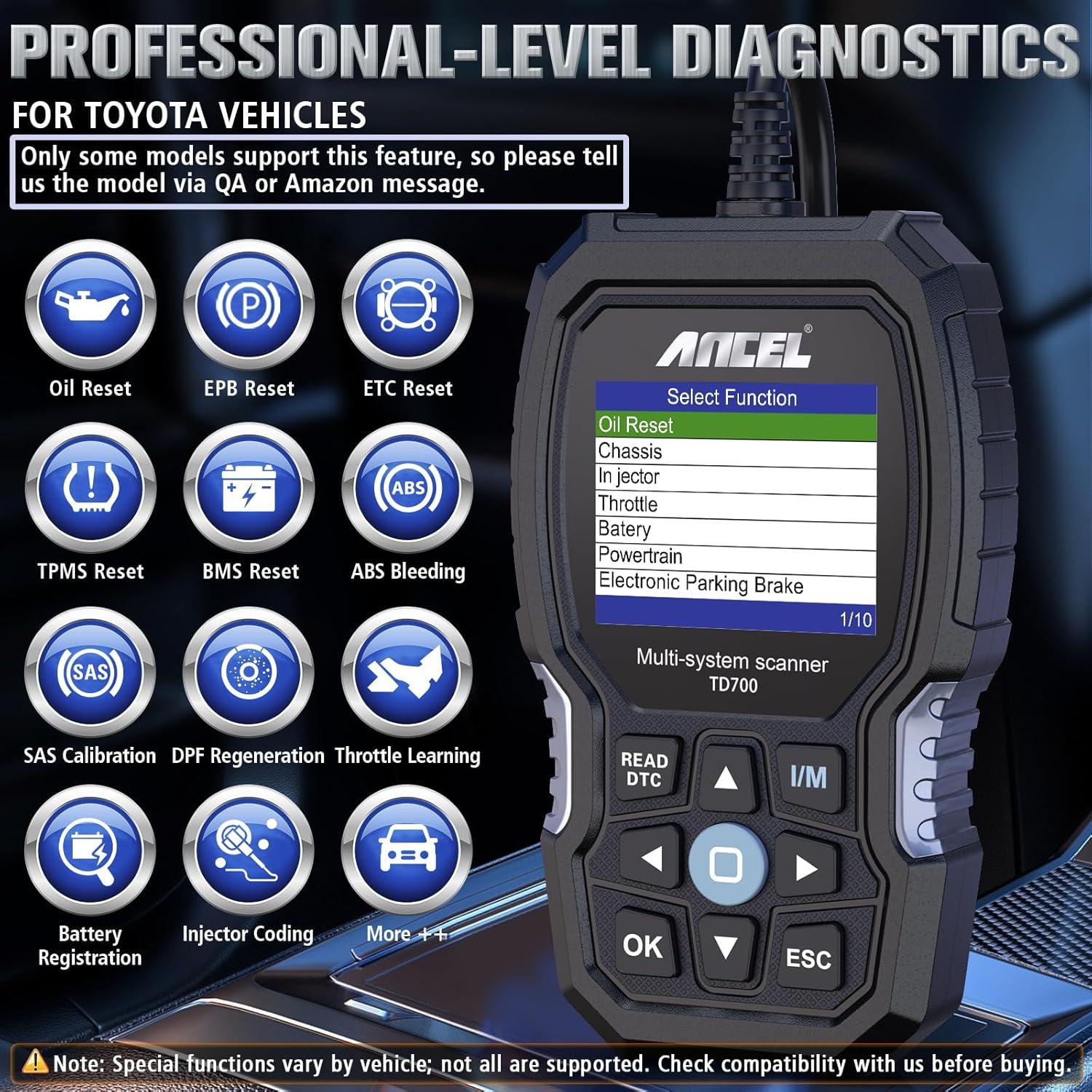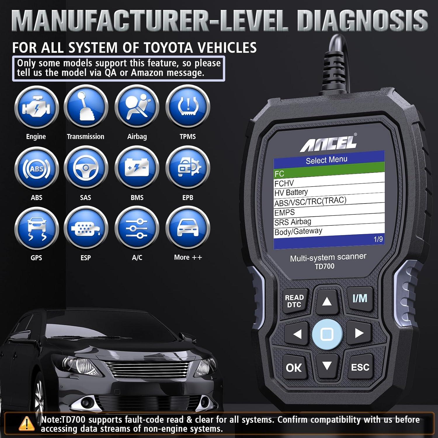 ANCEL TD700 OBD2 Scanner Fits for Toyota Lexus Scion Engine Car Diagnostic Scan Tool All System Code Reader for Reading/Erasing Code,1996-2021