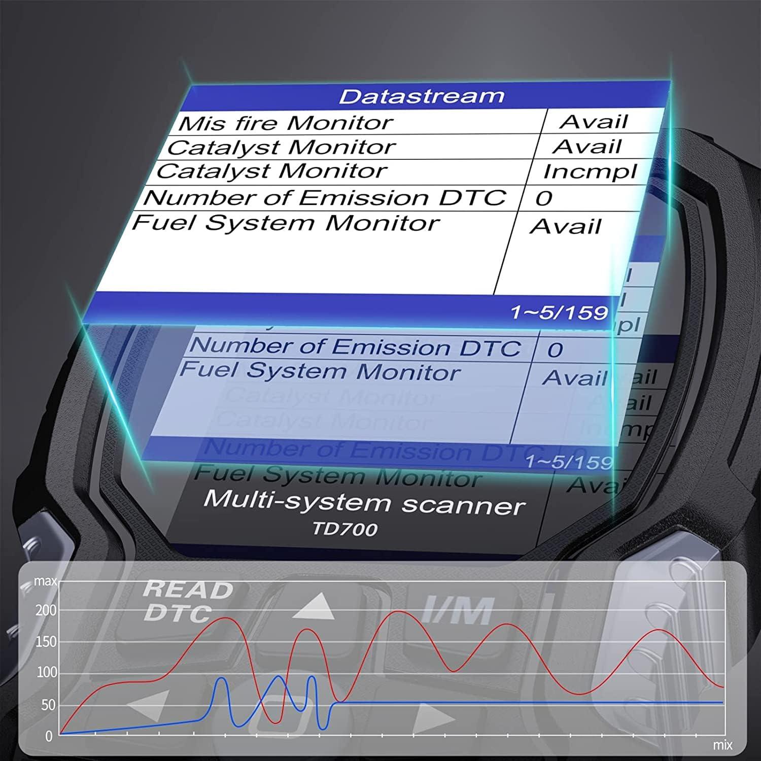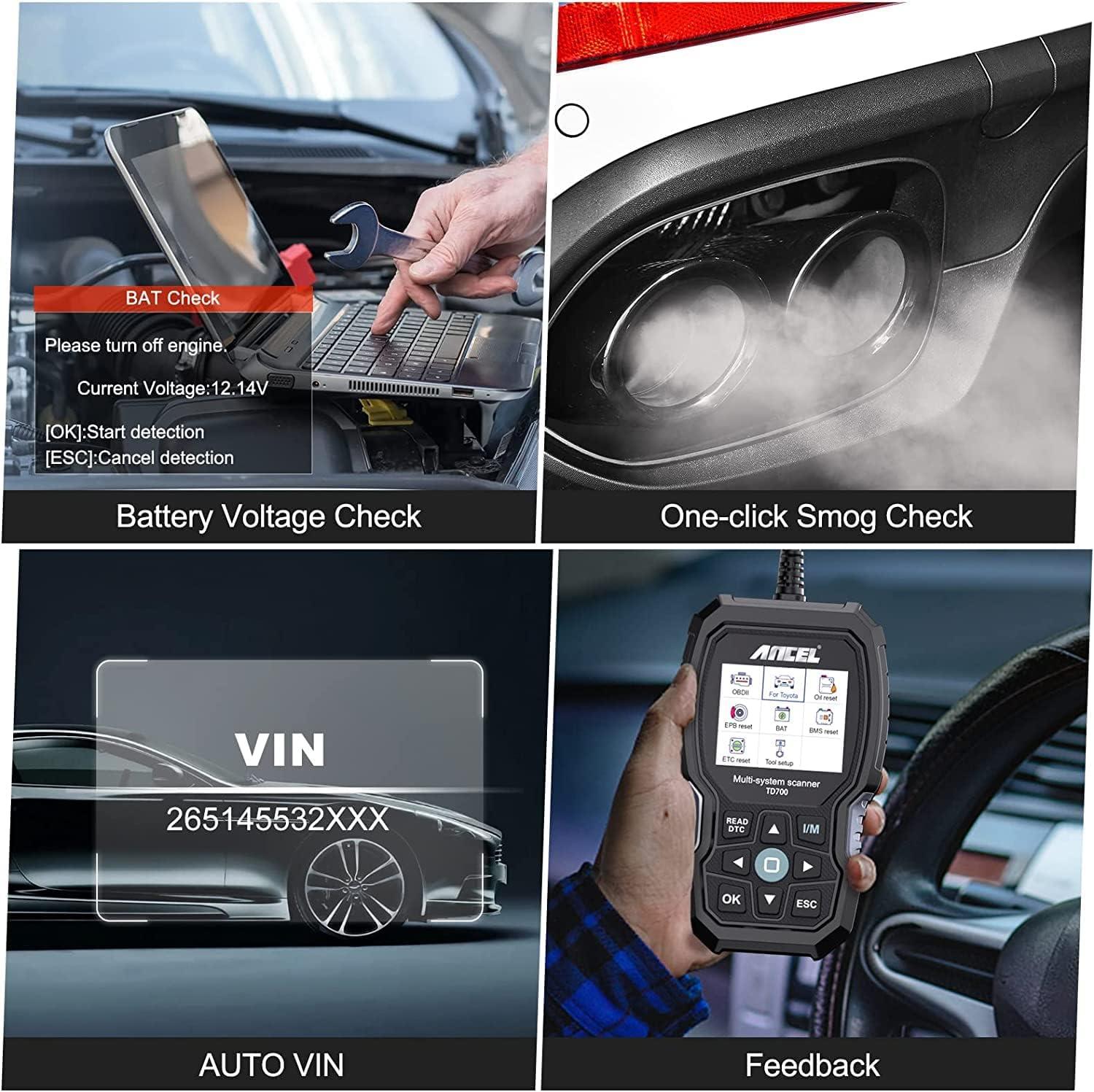 [ABS OBD2 Scanner]:The TD700 OBD2 Scanner can read and clear the Diagnostic Trouble Codes (DTC) data stream transmitted from the ABS. By retrieving the ABS code data, it can check the various brake components and accurately diagnose problems. If you encounter any product problems, we will do our best to serve you until you are satisfied