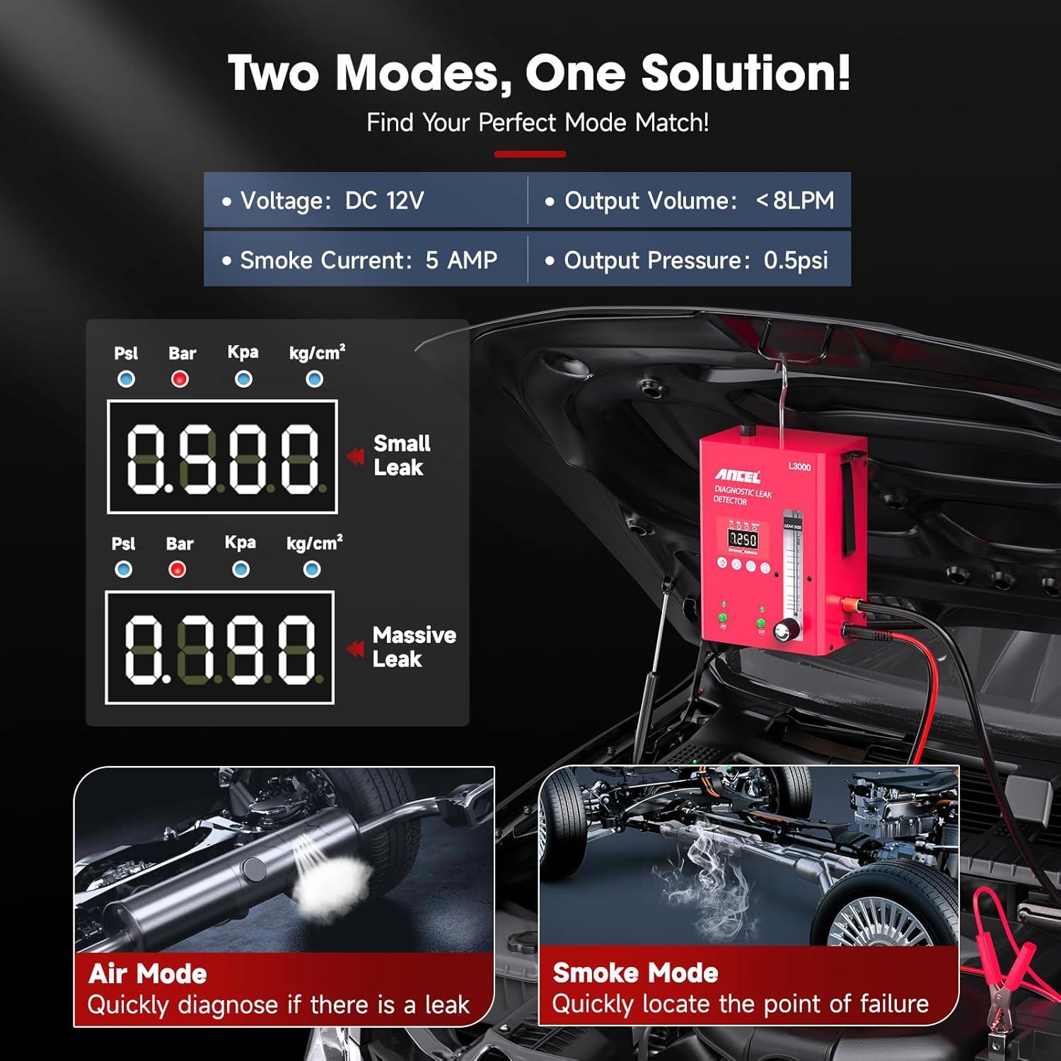 ANCEL L5000 PRO Upgraded Smoke Machine Automotive Adds Pressure Decay & Vacuum Test for EVAP Turbo Vacuum & More, Smoke Tester Automotive with Built-in Pump, LCD Screen, Detects Micro to Major Leaks