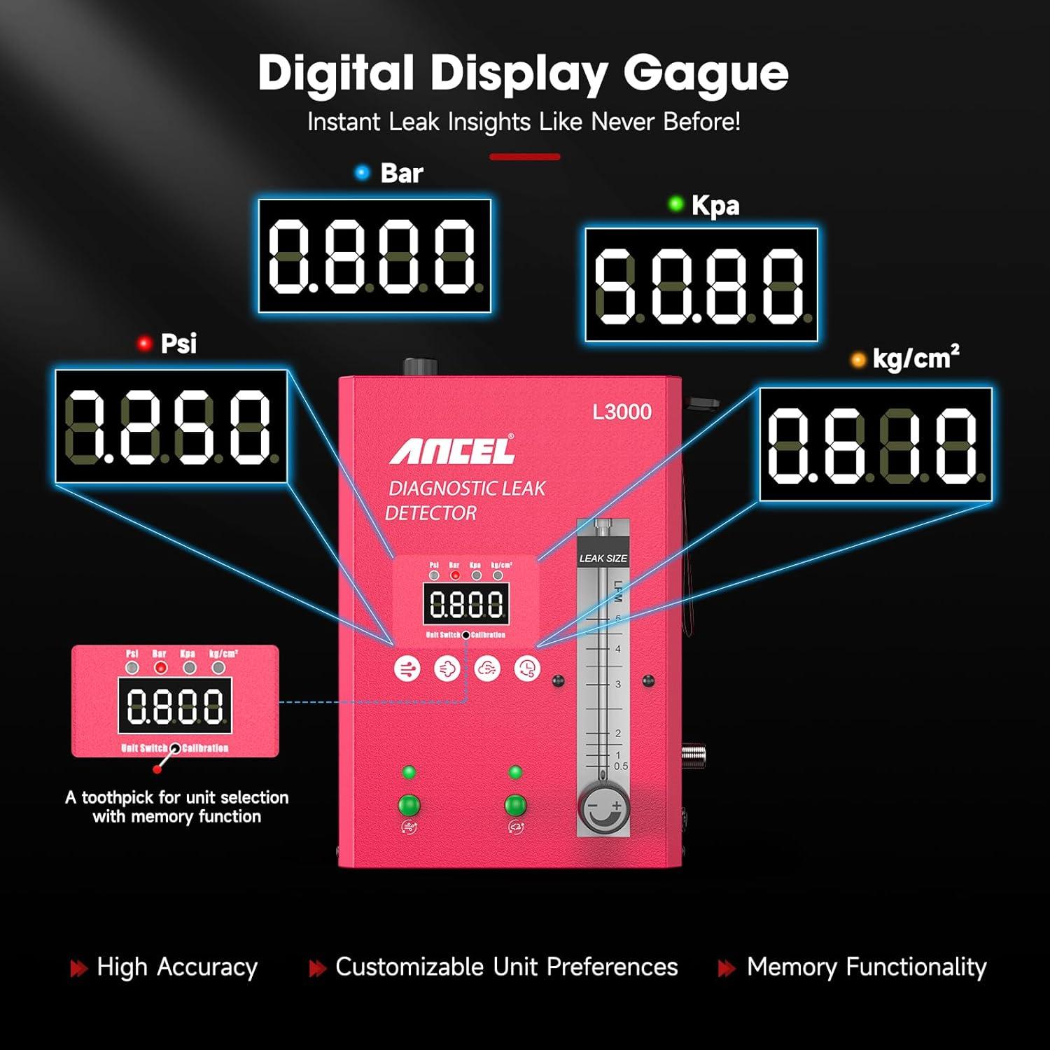 ANCEL (Upgrade Digital S3000 PRO Version L3000 Automotive Smoke Machine with Built-in Air Pump and Digital Pressure Gauge. Upgraded EVAP Smoke Machine Leak Tester for Leaks Test in Vacuum,Fuel, etc.(Red)