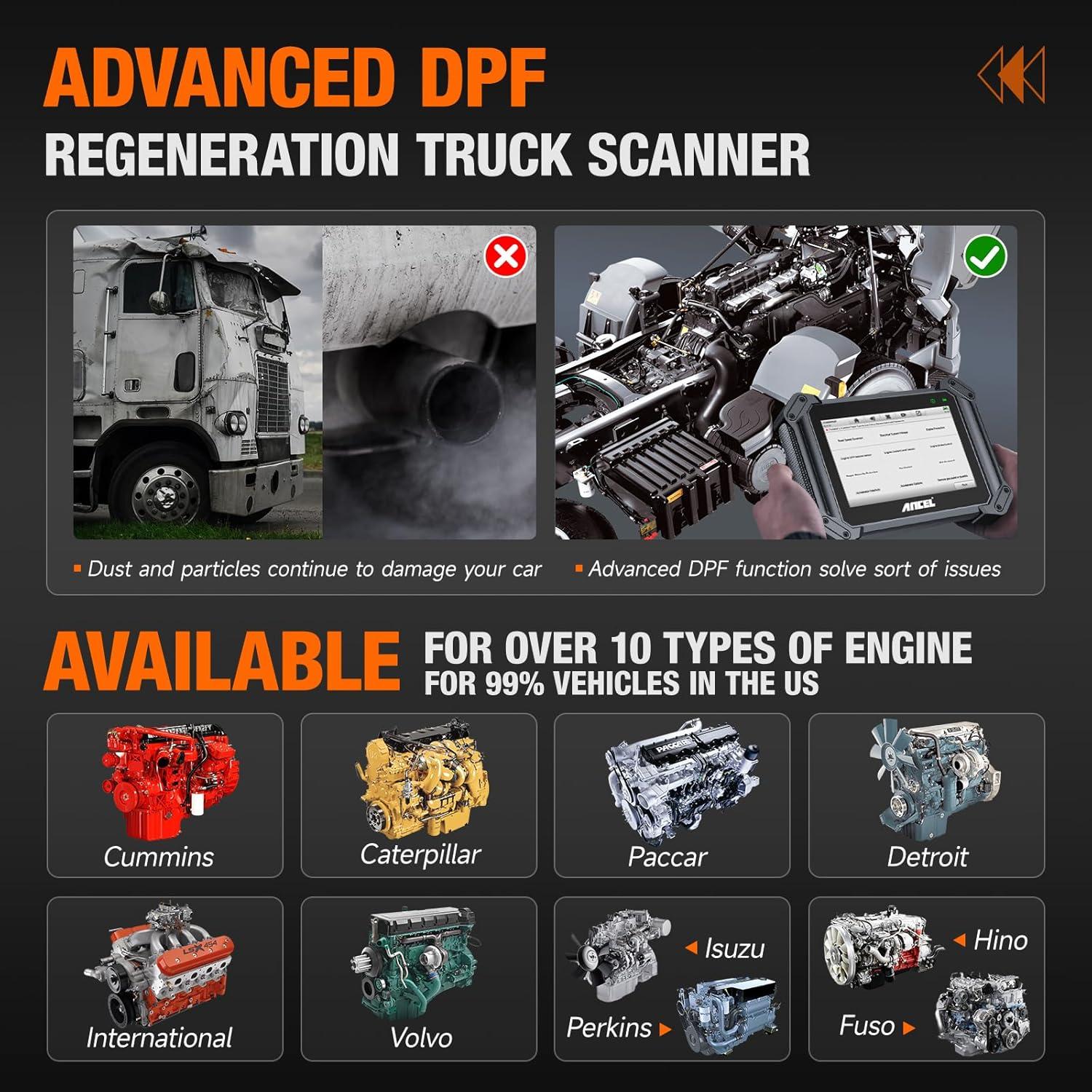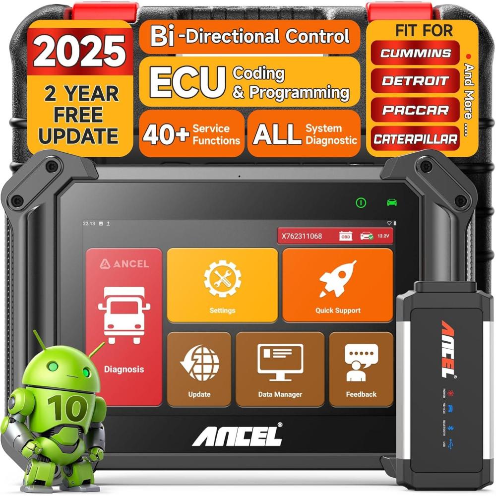 imageANCEL V6HD Heavy Duty Truck Scanner 2024 Diesel Diagnostic Scan Tool with Wide US Diesel Truck Compatibility 40 Resets ECU Coding Free Update DPF Regen for Cummins Caterpillar Paccar Detroit